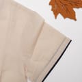 Introducing - Boys' Half Sleeve Beige Shirt with Navy Blue Piping made of 100% natural handspun khadi, dyed with azo-free natural dyes. This functional, comfortable, and elegant outfit will embrace your child in natural beauty. Perfect for all occasions, from parties to playdates, this set is crafted with the requirements of the tender skin of your child in mind. The breathable fabric allows for high air flow, making it hypoallergenic and perfect for sensitive skin. The comfort fit is ideal for your little explorers to move freely and comfortably.