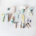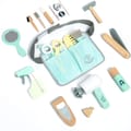 QUALITY: All pieces in this cute hairdresser are made of wood. The toy is painted with non-toxic paint. The cotton bag ties around a child's waist to hold the grooming set like a professional barber. Smooth edges make every piece okay for children 3 years old and above.
