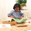Introducing the 'Treasure Trove 2.0' that is perfect for little explorers 12 months and up. This delightful treasure box is packed with love and learning! Inside, you'll find a soft, mellow sap green play silk, two colorful little peg dolls, and five beautifully crafted wooden Waldorf-inspired blocks. Each item is designed to spark tactile development, enhance hand-eye coordination, and promote fine motor skills—all while ensuring safe, sustainable play! Make play time and bonding moments even more enriching within this unique collection of Waldorf-inspired toys. Just wanted you to know, this box makes the perfect gift for a Baby Shower or your first meeting with your niece, nephew, grandchild, or friend's new baby!
