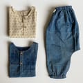 2 x kurta tops: 100% organic cotton, the indigo polka and checks are hand-block printed by Ajrakh artisans in rural Gujarat. Wooden button closures and flat seams for ease of wearing and fit.
