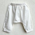 1 x pants: 100% organic cotton, natural white with elasticated waistband and bottom hem. Ideal for sensitive skin.